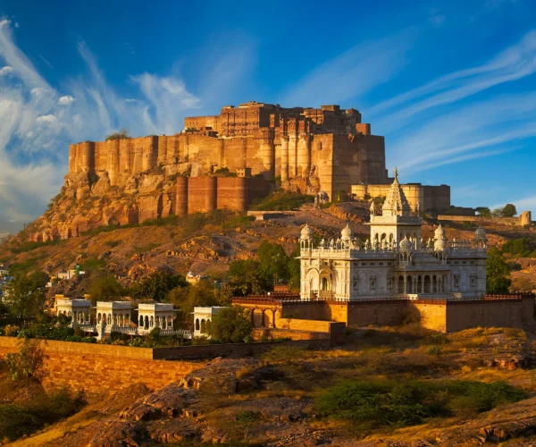 Continue to Jodhpur, the Blue City, dominated by the mighty Mehrangarh Fort overlooking blue-painted houses and bustling markets. Once the capital of Marwar, Jodhpur charms visitors with architectural gems like Jaswant Thada and Umaid Bhawan Palace, along with its vibrant old city full of local flavours and crafts.